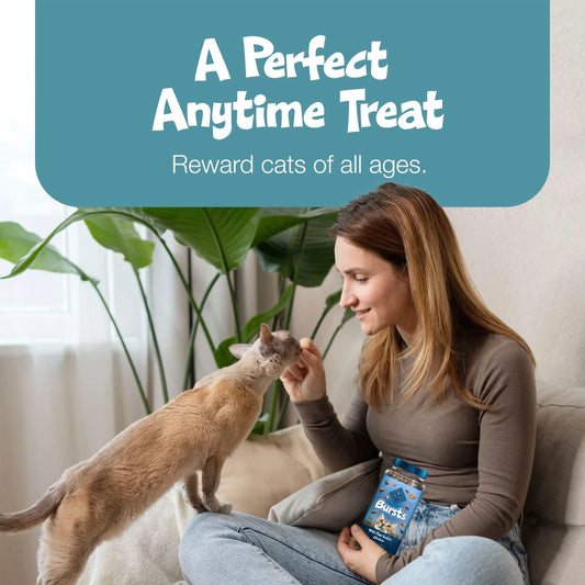 Bursts Crunchy & Creamy Cat Treats, Great for Training, Savory Seafood, 12-Oz Tub